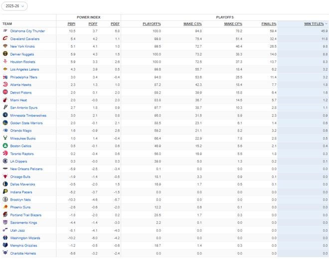 10场后,外媒更新夺冠概率:湖人3.2%,火箭8.3%,一队高达45.9%